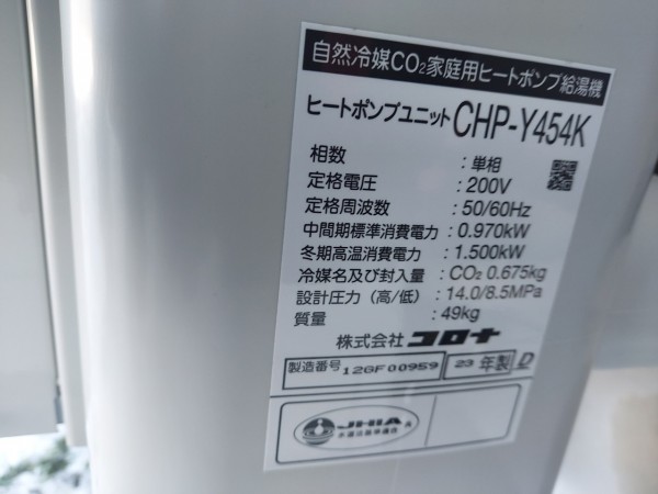 羽生市神戸 コロナ自然冷媒CO2家庭用ヒートポンプ給湯機ヒートポンプユニットCHP-Y454K エコキュート交換工事