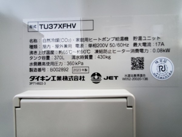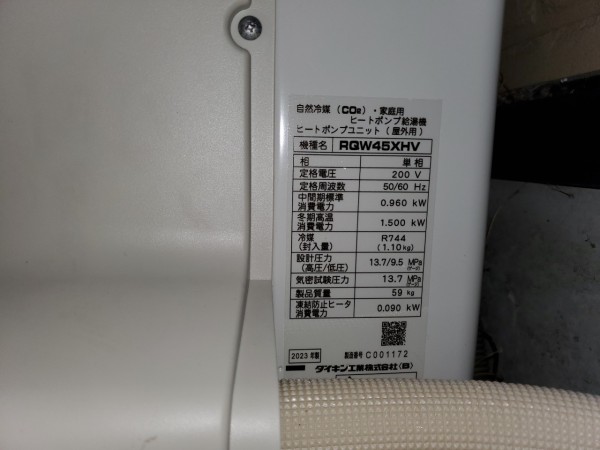 桶川市倉田 ダイキン自然冷媒CO2家庭用ヒートポンプ給湯機ヒートポンプユニットRQW45XHV、貯湯ユニットTU37XFHV エコキュート交換工事
