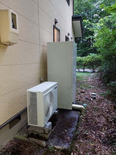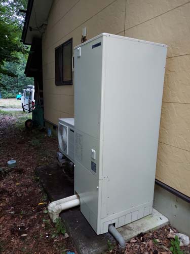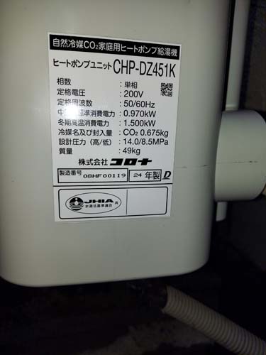 鶴ヶ島市中新田 コロナエコキュート→コロナ自然冷媒CO2家庭用ヒートポンプ給湯機 ヒートポンプユニットCHP-DZ451K エコキュート交換工事