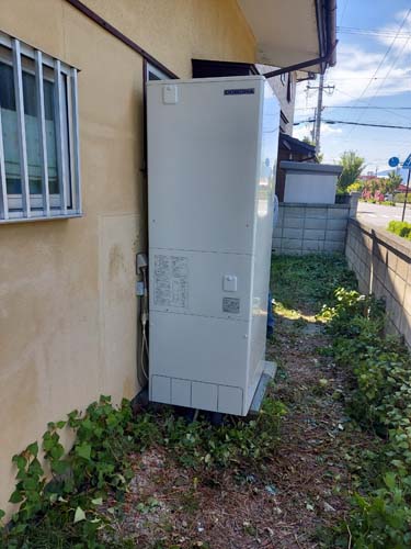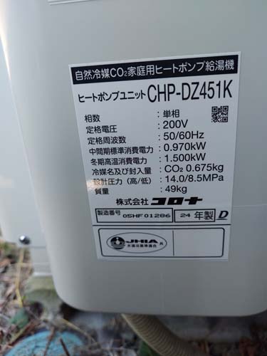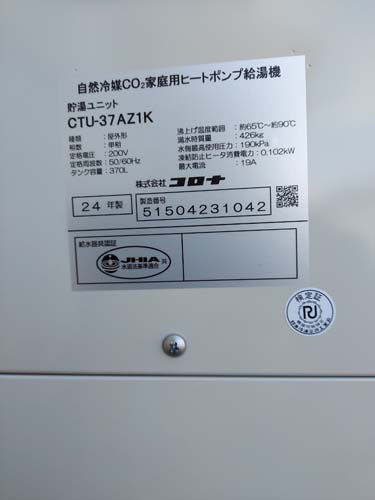 行田市関根 コロナ自然冷媒CO2家庭用ヒートポンプ給湯機ヒートポンプユニットCTU-37AZ1K、ヒートポンプユニットCHP-DZ451K エコキュート交換工事