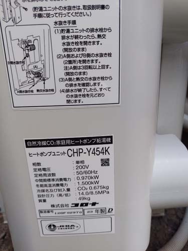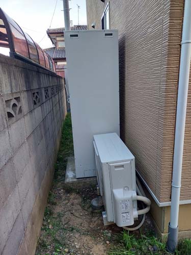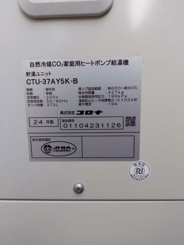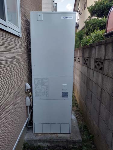 鴻巣市境 コロナ自然冷媒CO2家庭用ヒートポンプ給湯機 貯湯ユニットCTU-37AY5K-B、ヒートポンプユニットCHP-Y454K エコキュート交換工事