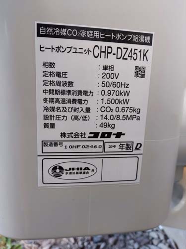トップページ > 工事事例一覧 > 桶川市小針領家 コロナ自然冷媒CO2家庭用ヒートポンプ給湯機貯湯ユニットCTU-37AZ1K、ヒートポンプユニットCHP-DZ451K エコキュート交換工事