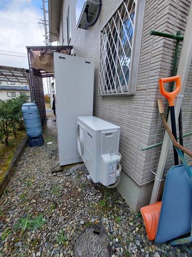 トップページ > 工事事例一覧 > 熊谷市押切 コロナ自然冷媒CO2家庭用ヒートポンプ給湯機 ヒートポンプユニットCHP-DZ451K エコキュート交換工事