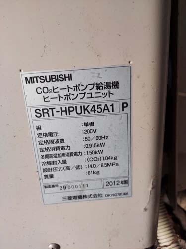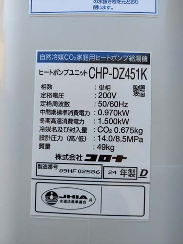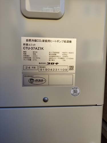 行田市関根 三菱電機エコキュートSRT-HPUK45A1→コロナ自然冷媒CO2家庭用ヒートポンプ給湯機貯湯ユニットCTU-37AZ1K、ヒートポンプユニットCHP-DZ451K エコキュート交換工事