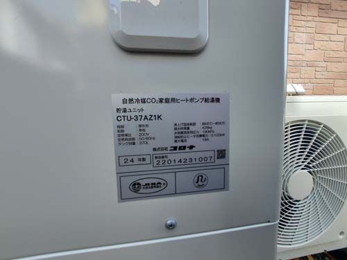 行田市荒木 コロナ自然冷媒CO2家庭用ヒートポンプ給湯機貯湯ユニットCTU-37AZ1K、ヒートポンプユニットCHP-DZ451K エコキュート交換工事