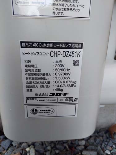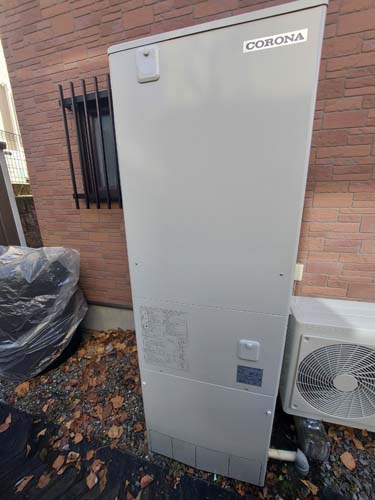 行田市荒木 コロナ自然冷媒CO2家庭用ヒートポンプ給湯機 ヒートポンプユニットCHP-456K→コロナ自然冷媒CO2家庭用ヒートポンプ給湯機貯湯ユニットCTU-37AZ1K、ヒートポンプユニットCHP-DZ451K エコキュート交換工事