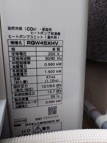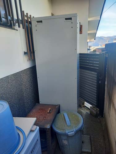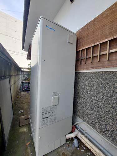 川越市小室 コロナ自然冷媒CO2家庭用ヒートポンプ給湯機 ヒートポンプユニットCHP-458K→ダイキン工業自然冷媒CO2家庭用ヒートポンプ給湯機貯湯ユニットTU37XFHV、ヒートポンプユニットRQW45XHV エコキュート交換工事