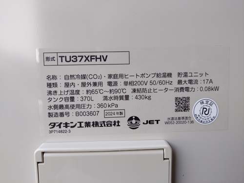 川越市小室 ダイキン工業自然冷媒CO2家庭用ヒートポンプ給湯機貯湯ユニットTU37XFHV、ヒートポンプユニットRQW45XHV エコキュート交換工事