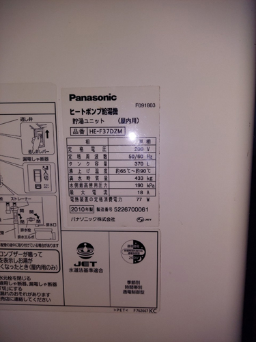 入間市野田 パナソニックヒートポンプ給湯機 貯湯ユニットHE-F37DZM→コロナ自然冷媒CO2家庭用ヒートポンプ給湯機 ヒートポンプユニットCHP-DZ451K エコキュート交換工事
